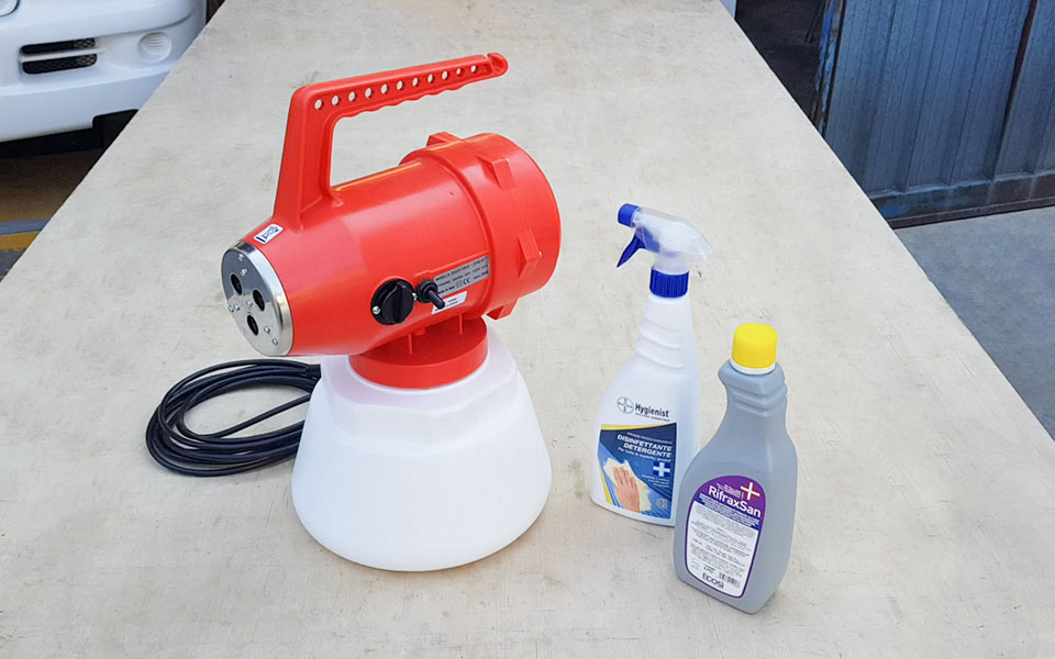 La sanificazione del Camper viene effettuata disinfettando ogni superficie presente e successivamente sanificando l’aria all’interno del Camper.